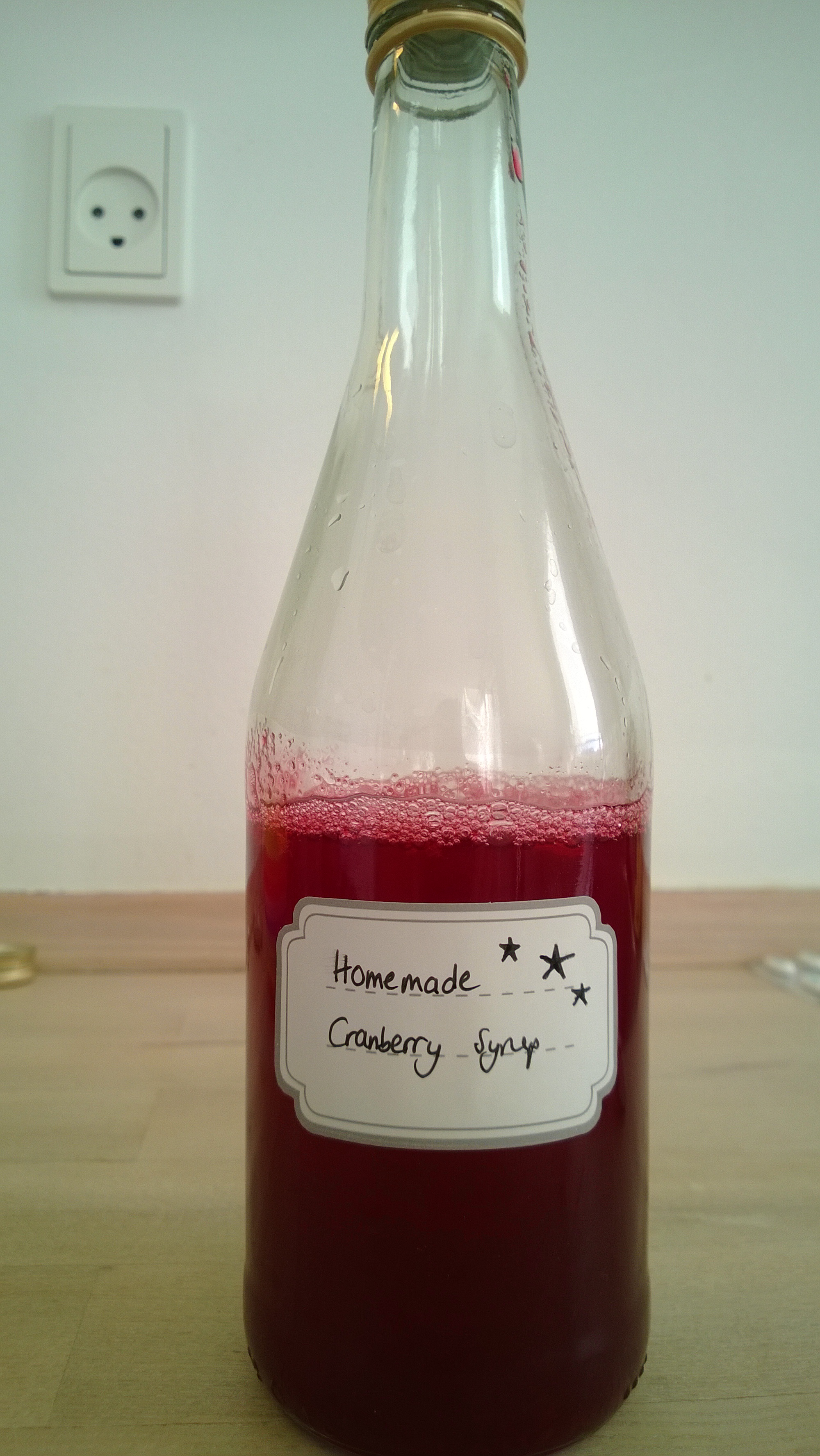 Cooking and baking have been some of my favorite things to do for quite a while now, but recently I’ve also begun making other things on my own, such as jam, apple sauce, chutneys, pesto etc. And then, for Thanksgiving, I decided to make a cranberry syrup to use in my welcome drink (it’s an adaptation of a Kir Royal: simply mix a bit of syrup with champagne, prosecco or white wine and garnish with an orange slice), but this syrup is also a great addition to vanilla ice cream or other desserts, or can be used in cocktails. Therefore, it’s a wonderful Christmas gift. You can find the step-by-step instructions below!